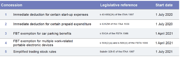 The FBT concessions start from the beginning of the next FBT year namely, 1 April 2021.