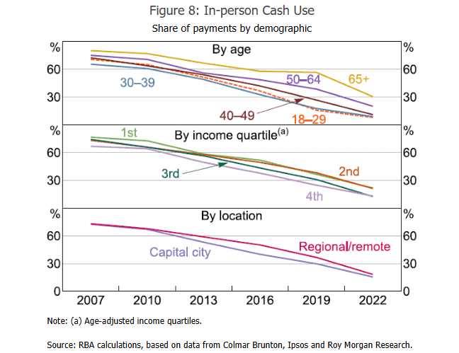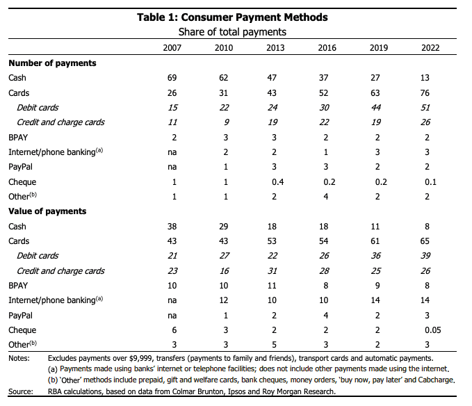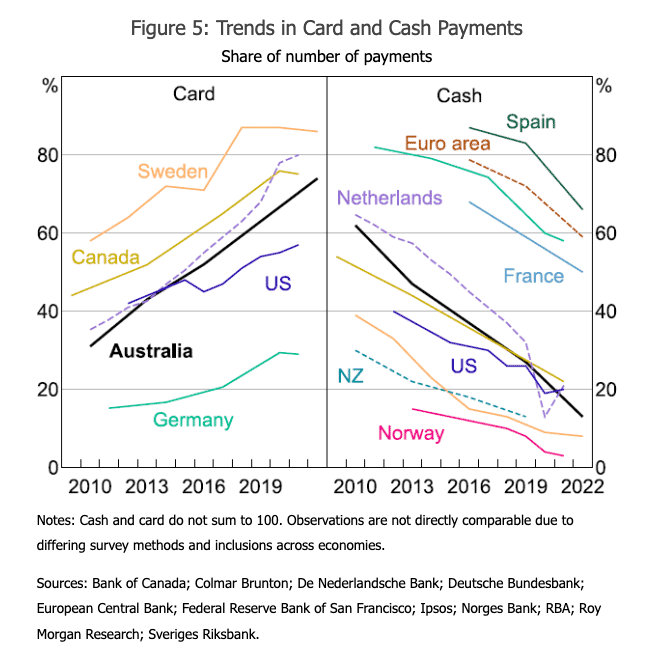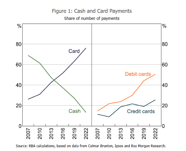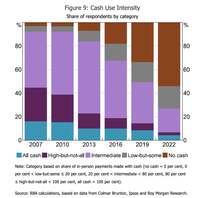 By 2022, over half of Australians used no cash in a week, up from about one-third in 2019 and around one-fifth in 2016.