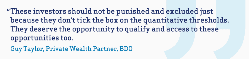 Guy Taylor, Private Wealth Partner at BDO, says a narrow focus on quantitative asset and income limits may not address whether a client is truly sophisticated.